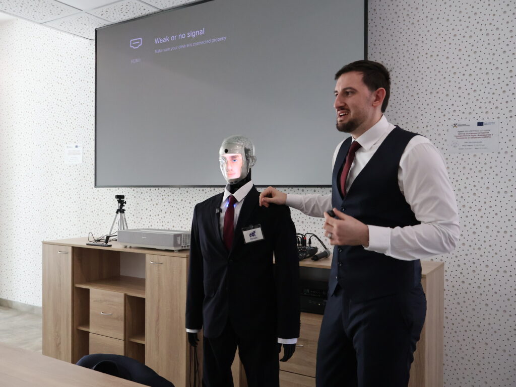 На 28 февруари 2026 г. в зала 113 в сградата на ЦВП УНИТе се проведе специална демонстрация на първия български хуманоиден робот Робърт (Robert the Robot), разработен от базираната в Женева компания RB Labs.