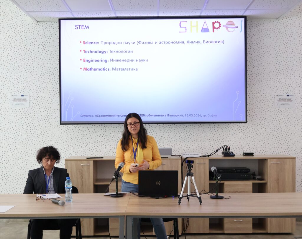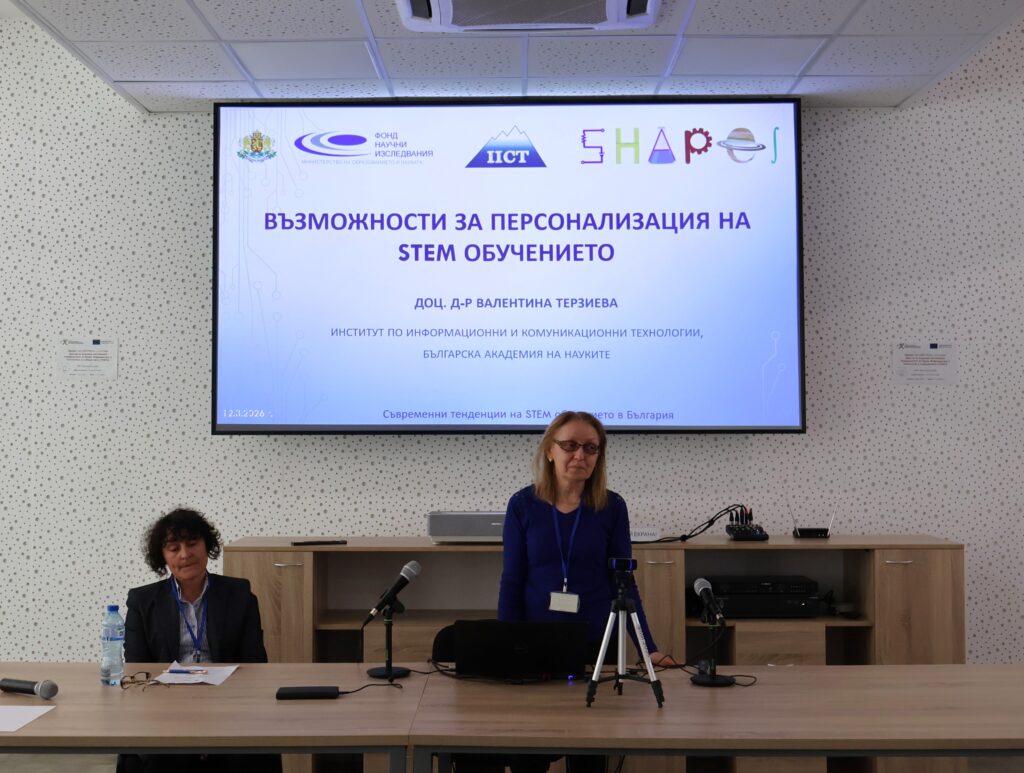 В рамките на научна презентация доц. д-р Елена Паунова-Хубенова от Института по информационни и комуникационни технологии към БАН представи изследване по проекта SHAPES, посветено на съвременните тенденции в STEM обучението в България и възможностите за неговата оптимизация и персонализация.