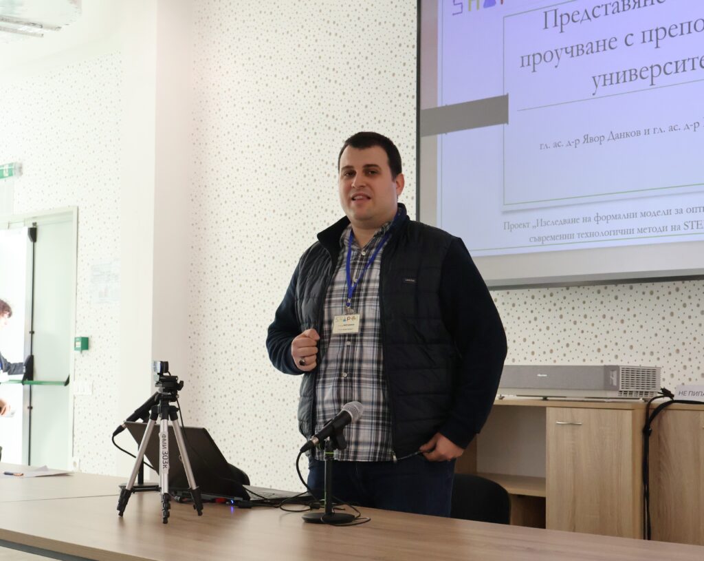 Анкетно проучване, насочено към университетските преподаватели по STEM дисциплини в България, представиха гл. ас. д-р Явор Данков и гл. ас. д-р Едита Джамбазова. Проучването се провежда чрез онлайн анкета сред преподаватели от университети в цялата страна, включваща 27 въпроса – както затворени, така и с възможност за коментар. Целта му е да събере представителни данни за прилаганите методи на преподаване, използването на иновативни технологии и възможностите за оптимизация и персонализация на учебния процес. Анкетата е структурирана в тематични раздели, обхващащи профила на преподавателите, иновативните подходи и ефективността на обучението. Събраните данни ще бъдат анализирани в рамките на проекта SHAPES и ще послужат за разработване на модели и препоръки, насочени към подобряване на STEM обучението и ролята на цифровите технологии в българските университети.
